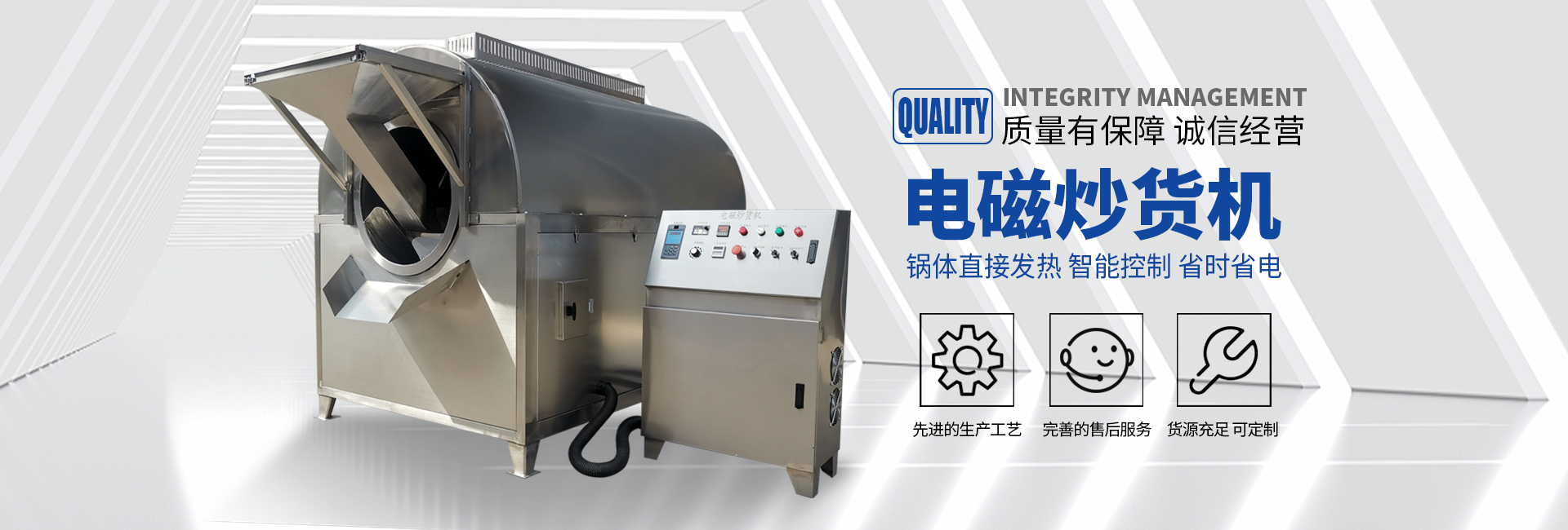 電磁炒貨機快速炒貨的小妙招自動化程度高:該機是流水線作業的生產線,速度快、產量高、運行過程僅需1人操作。●體積小、占地面積少●智能:該機有強大的溫度智能修復功能,可控性強、智能控溫。●環保:該機是采用···